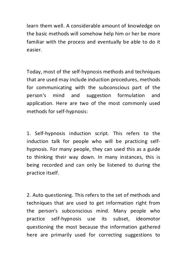 Free Guide to SelfHypnosis Oxford Hypnotherapy. Free Guide to SelfHypnosis Learn SelfHypnosis Free. Methods of selfhypnosis range from listening to relaxation tapes to simply clearing your mind of thoughts